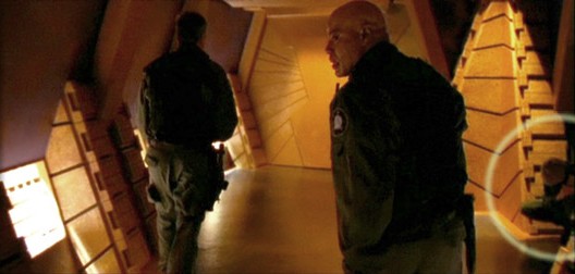 Le P-90 doit être chargé pour fonctionner (voir barrette or) or Samantha Carter et Jack O'Neill, tous deux en mission, tirent sans munition !