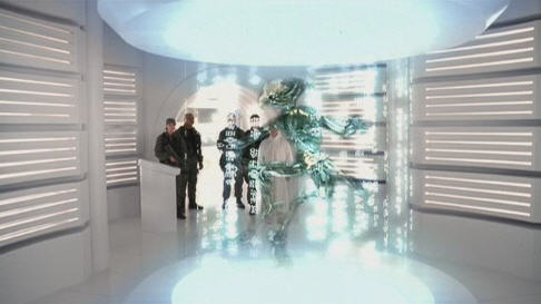 Faiblesses : Un bip à tonalité spécifique soutenu perturbe les dispositifs. La forme de vie imitée par l'alien est placée en animation suspendue et reprend conscience si l'alien meurt, est déconnecté du dispositif ou traverse un vortex